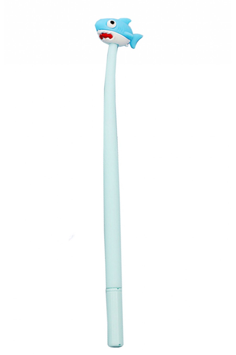 Divertidos bolígrafos de gel con tiburón de goma en su extremo.