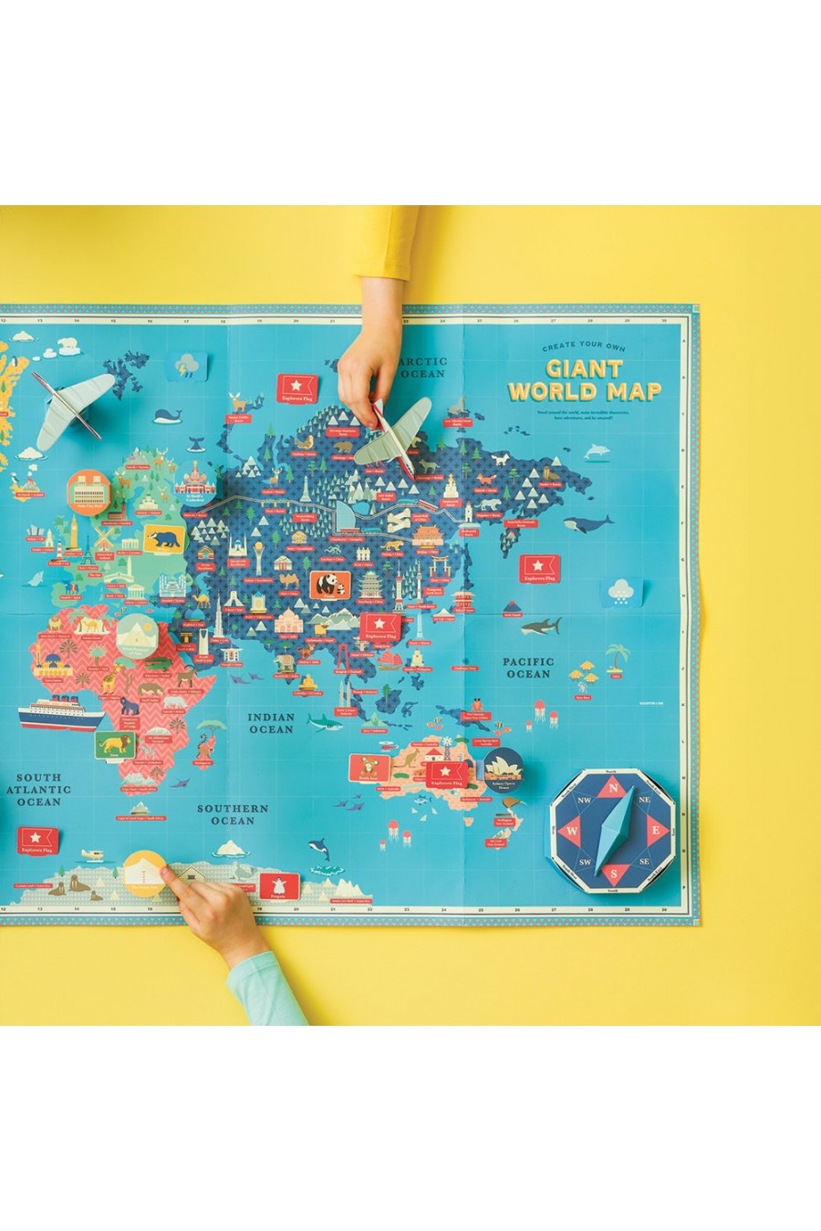 Explora el mundo creando un mapa interactivo de pared gigante completo con brújula 3D, aviones, barcos, puntos de referencia emergentes y muchas actividades divertidas.