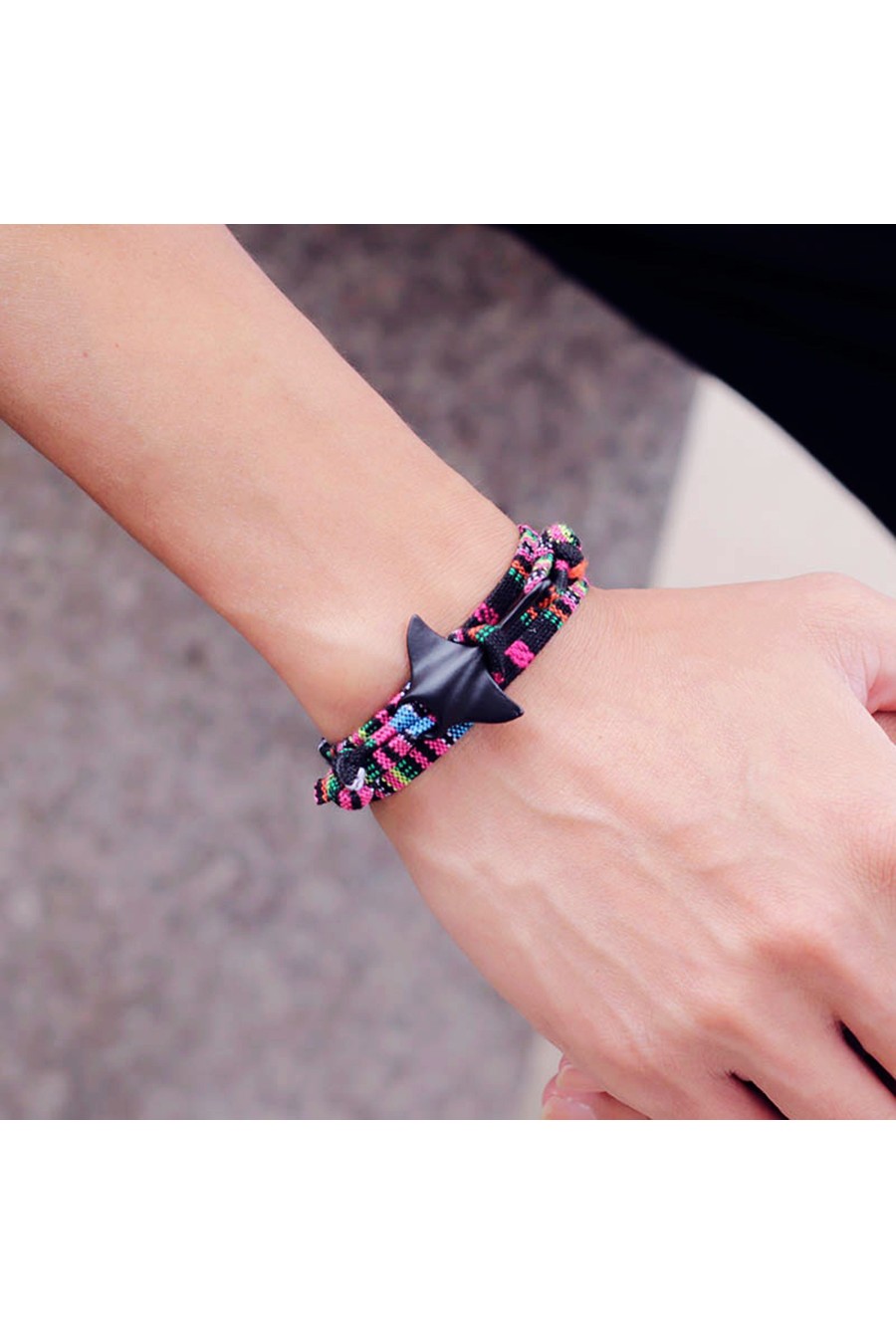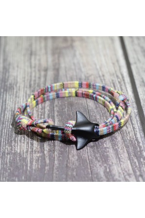 Pulsera de cuerda de colores para hombre y mujer. Ajustable. Cierre con forma manta raya negra.