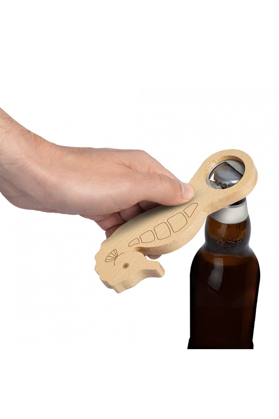 Flaschenöffner aus Holz / Edelstahl in Form einer Schildkröte oder eines Seepferdchens