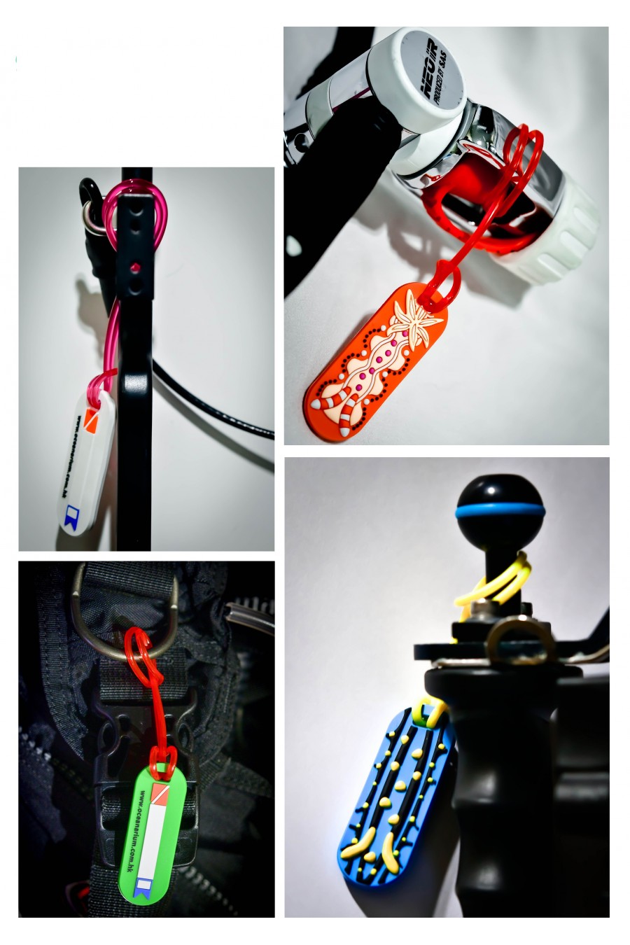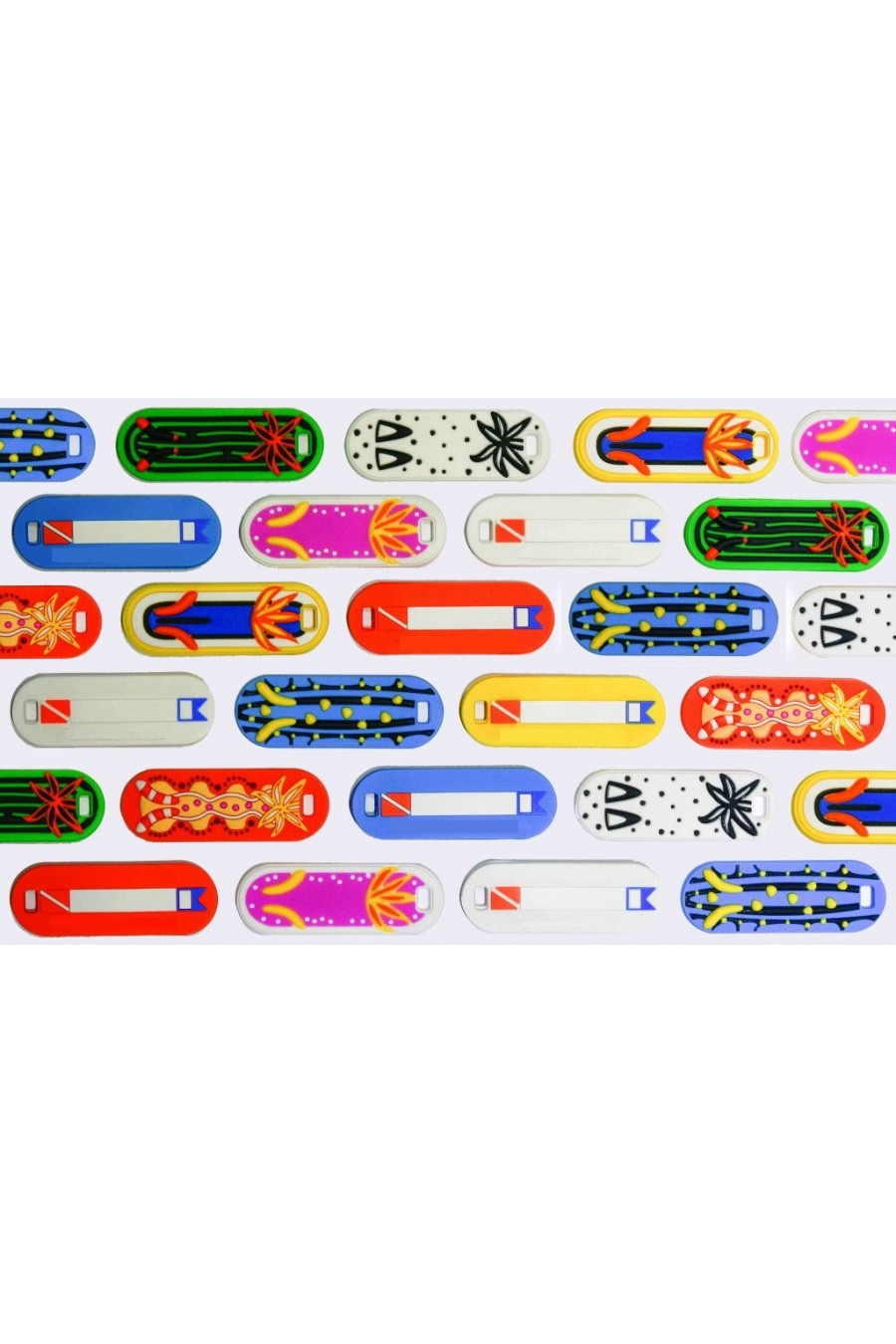 Jedes einzelne Element Ihres Teams wird mit diesen exklusiven und originellen Kennzeichnungsetiketten mit farbenfrohen Formen verschiedener Nacktschneckenarten perfekt identifiziert. Gib ihnen deinen Namen und hänge sie an deinen Atemregler, deine Jacke oder deine Taschenlampe und du wirst sie niemals mit dem eines anderen Tauchkumpels verwechseln. Tauchfähig und gut sichtbar, sind sie perfekt, um Ihre Ausrüstung immer zu haben.