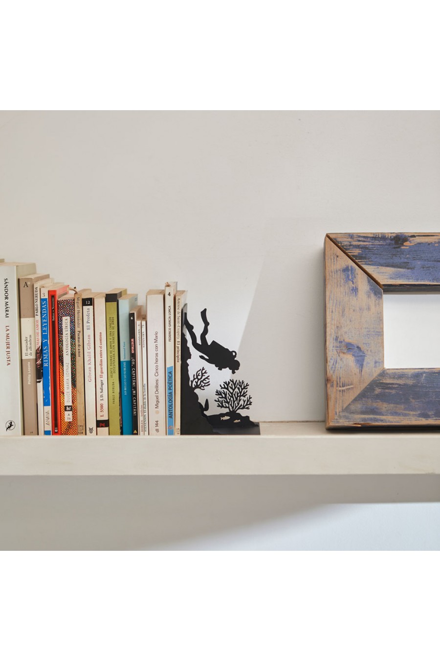 Originelles Design – Buchstütze, die einen Taucher in den Tiefen des Ozeans simuliert.