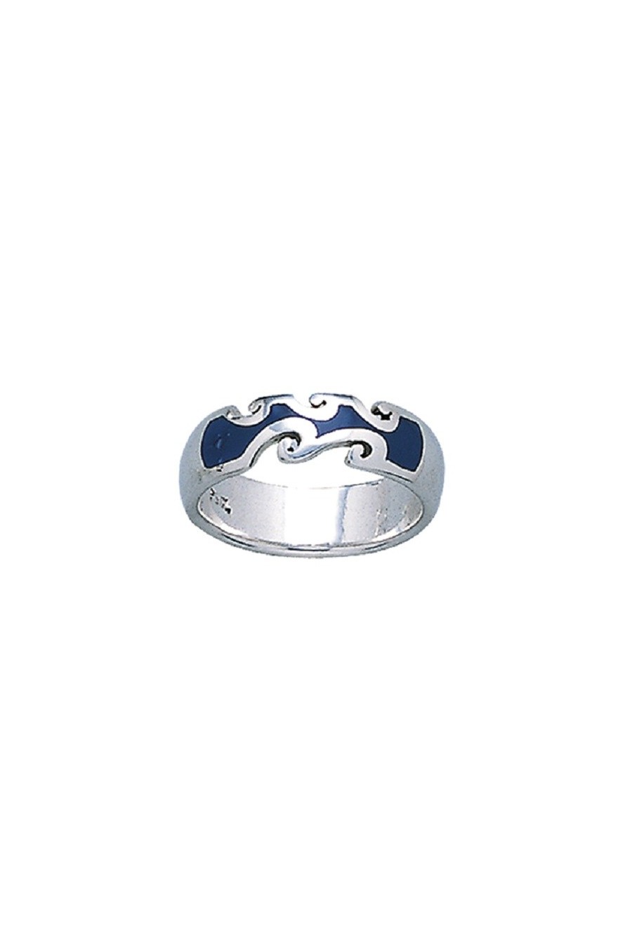 Capture el poder y la belleza intemporales del mar con este anillo artesanal de plata esterlina con olas oceánicas azules, perfecto para los surfistas.
