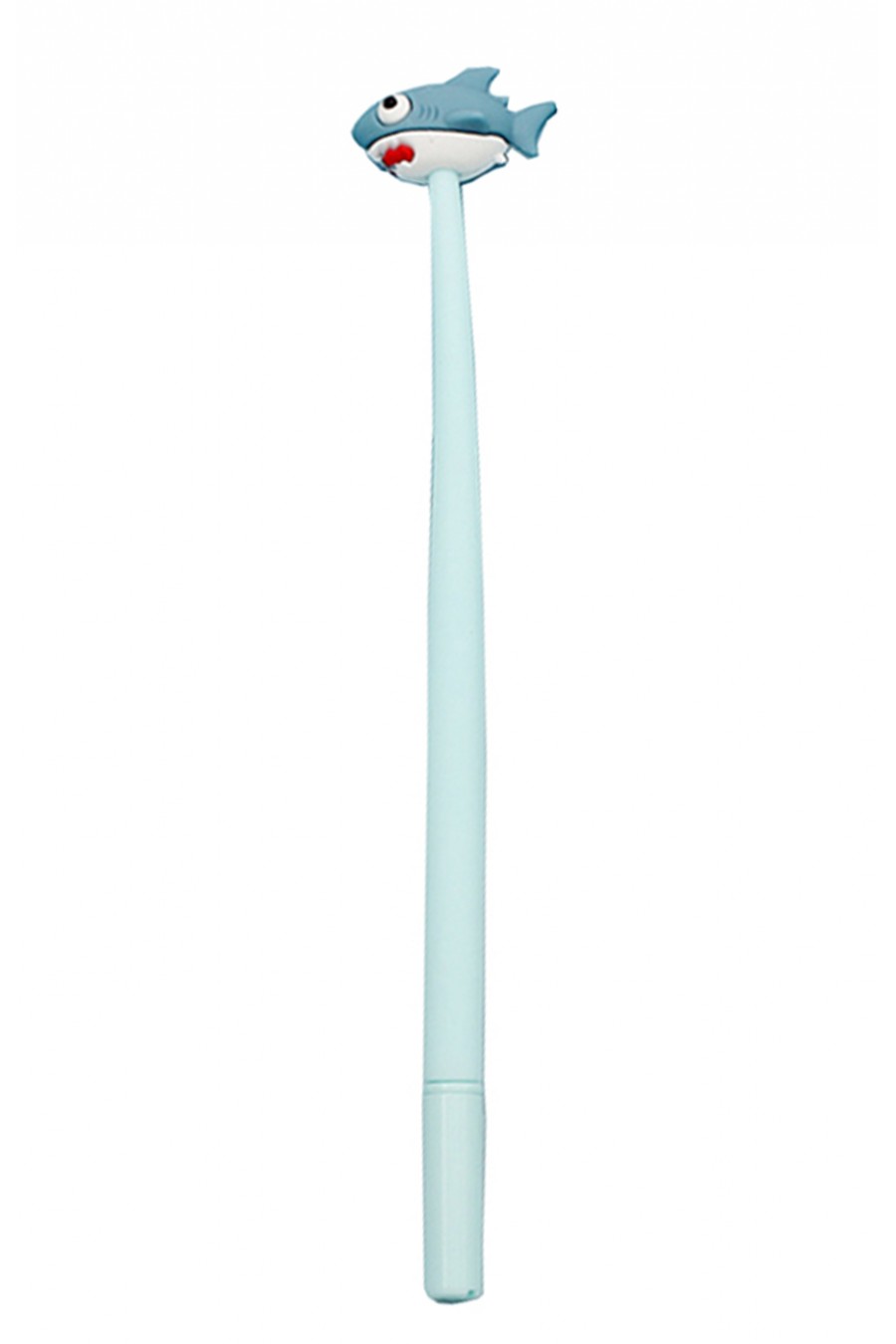 El extremo final del bolígrafo es blandito, por lo que el tiburón bascula ligeramente al escribir o dibujar.