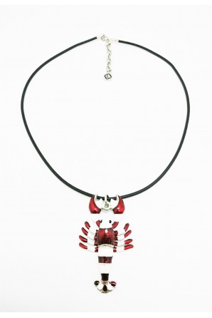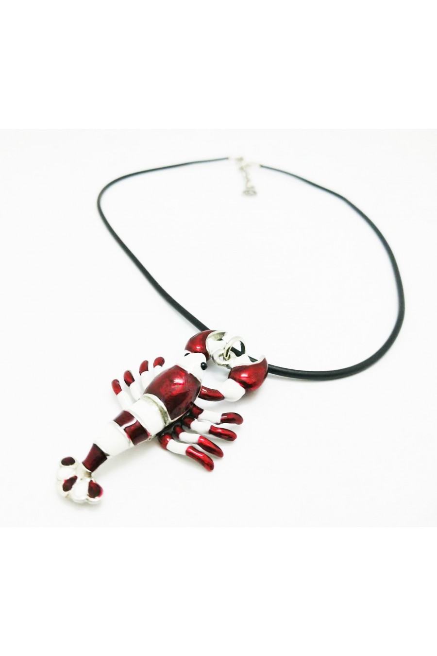 Colgante forma de gamba de aleación de estaño. Acabado pulido natural y decorado en esmalte rojo y blanco. El regalo perfecto para los amantes del mar.