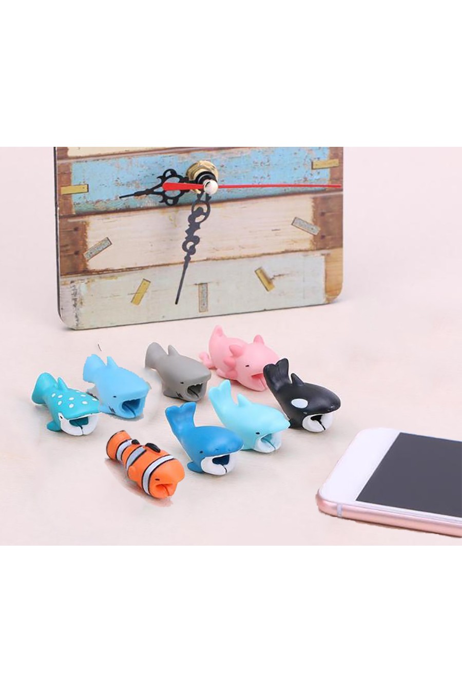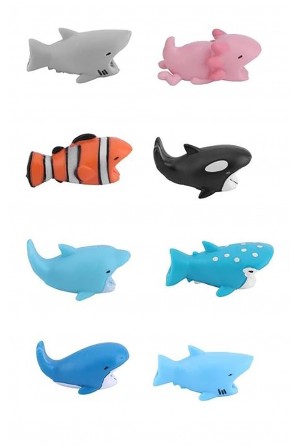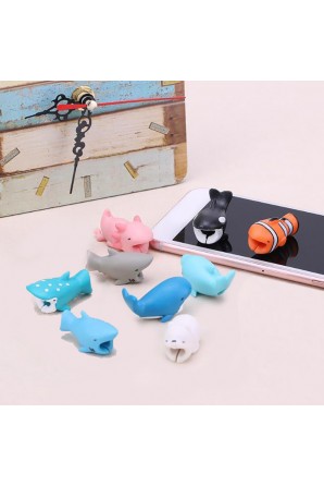 Divertidos y originales protectores de cables con 7 diferentes formas: Tiburón ballena, Pez payaso, Tiburón gris, Delfín, Tiburón azul, Ballena y Foca.