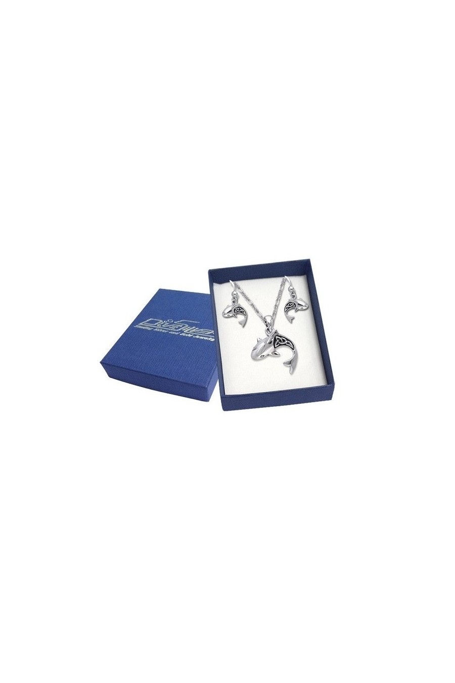 El Conjunto de Tiburón Celta de Plata Esterlina está compuesto por colgante con cadena y pendientes, en caja para regalo.