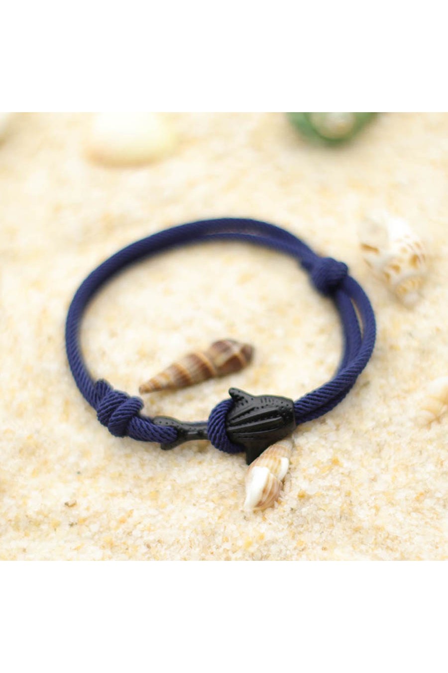 Pulsera de cuerda de colores para hombre y mujer. Ajustable. Cierre con forma de tiburón ballena negro o plaetado.
