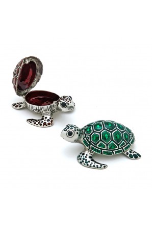 Cette délicate boîte à bibelots en forme de tortue est le meilleur cadeau pour les amoureux du monde marin. La coquille forme le couvercle. Il a une petite charnière à la queue qui s'ouvre pour révéler une boîte ovale peu profonde. Il se ferme par un loquet aimanté à l'arrière du cou.