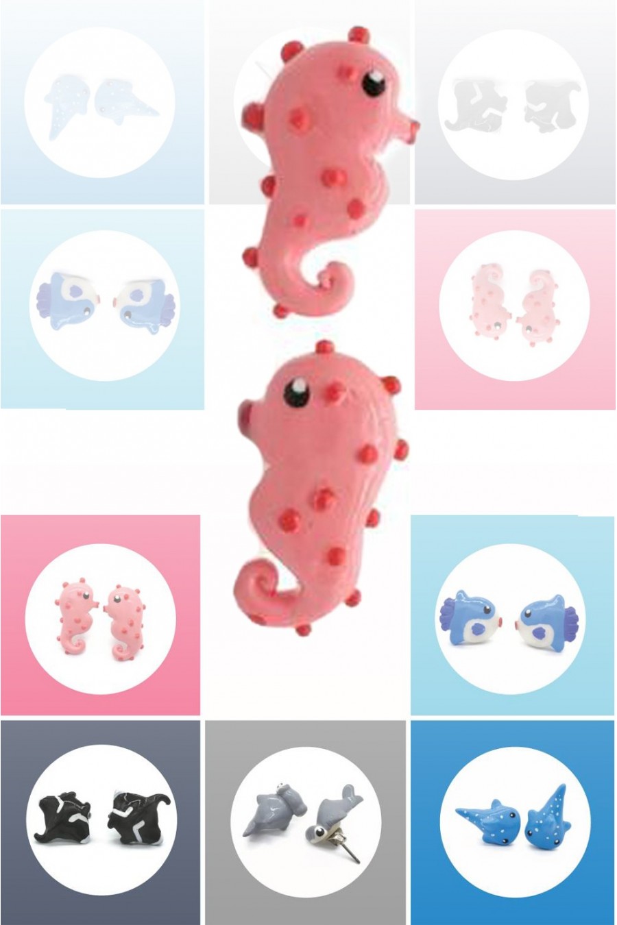 Boucles d'oreilles hippocampe pygmées en argile.