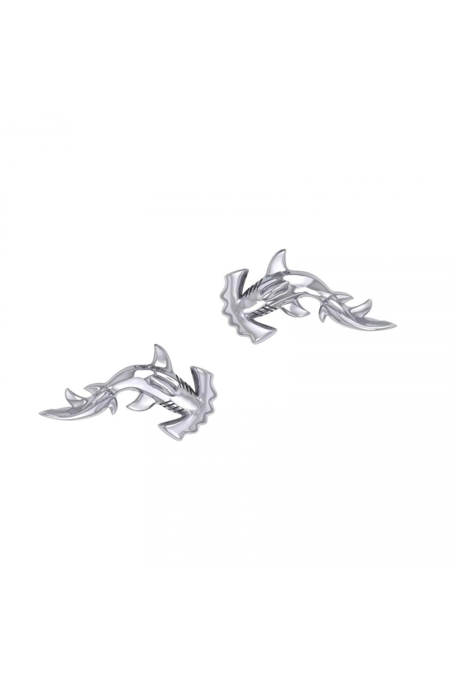 Fabriquées en argent sterling de haute qualité, les boucles d'oreilles présentent une représentation élégante et détaillée de la silhouette distinctive du requin marteau. Le design du requin-marteau, avec sa tête large et aplatie et ses nageoires gracieusement allongées, est à la fois captivant et symbolique de force et d'adaptabilité. L'utilisation de l'argent améliore l'attrait esthétique global tout en permettant une polyvalence en association avec différents styles.