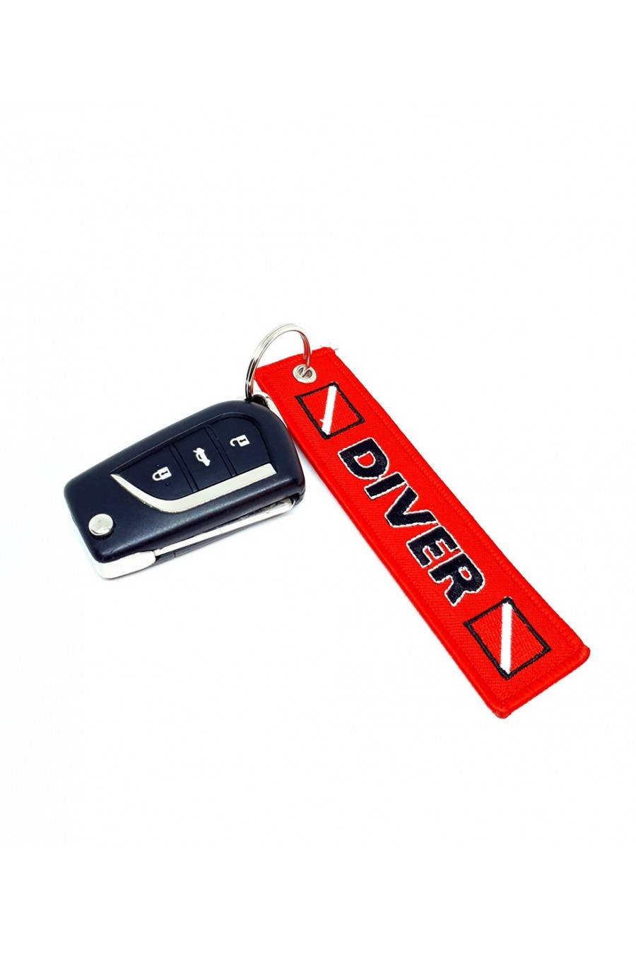 Porte-clés style aviation brodé du mot DIVER sur les deux côtés. Parfait à utiliser comme porte-clés, étiquette de bagage, identifiant pour votre sac à dos ou même votre gilet de plongée.