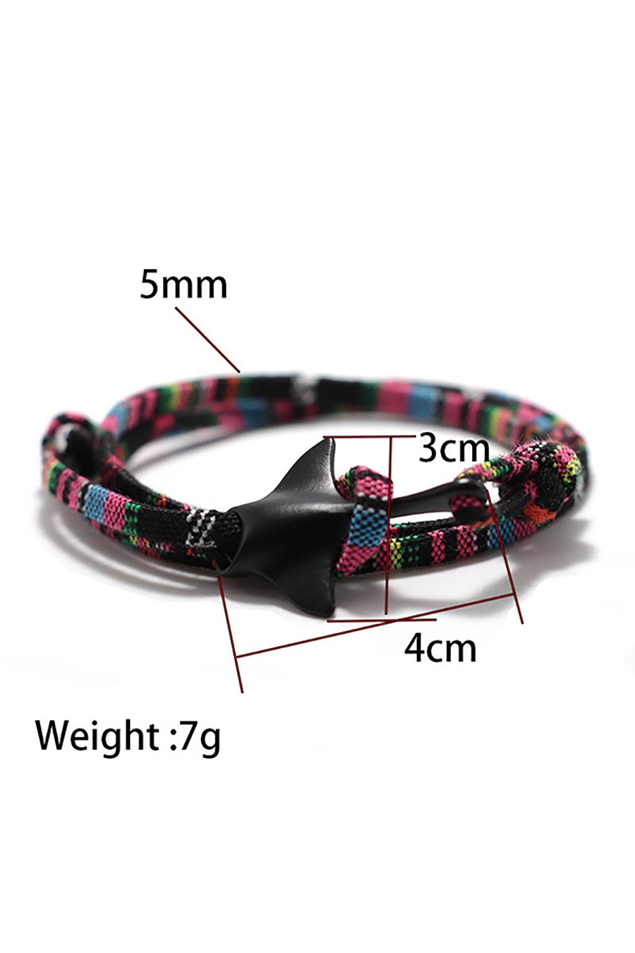 Bracelet en corde coloré pour homme et femme. Ajustable. Fermeture raie manta noire.