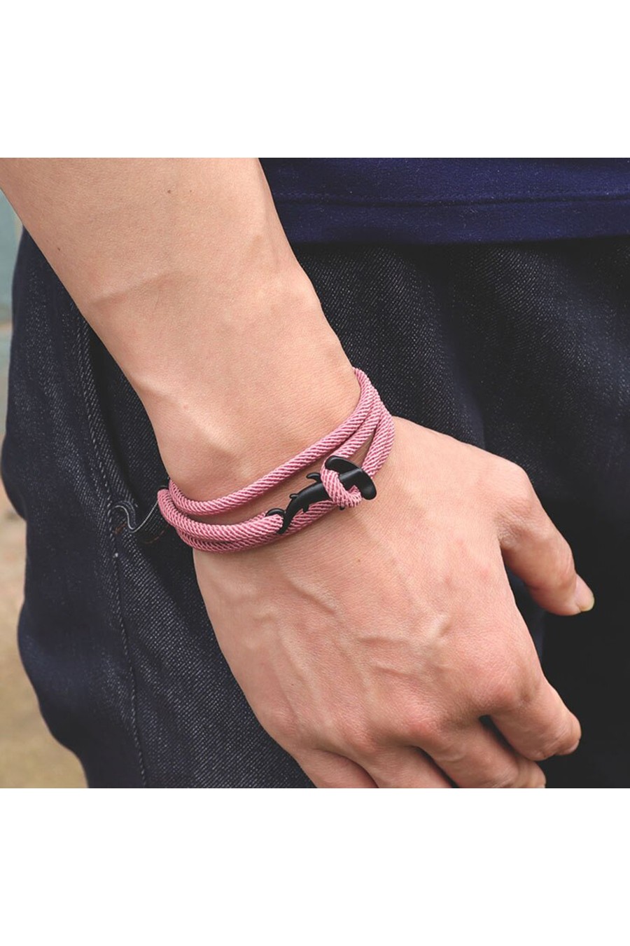 Colorful rope bracelet for men and women. Adjustable. Silver or black hammerhead shark locking bead.