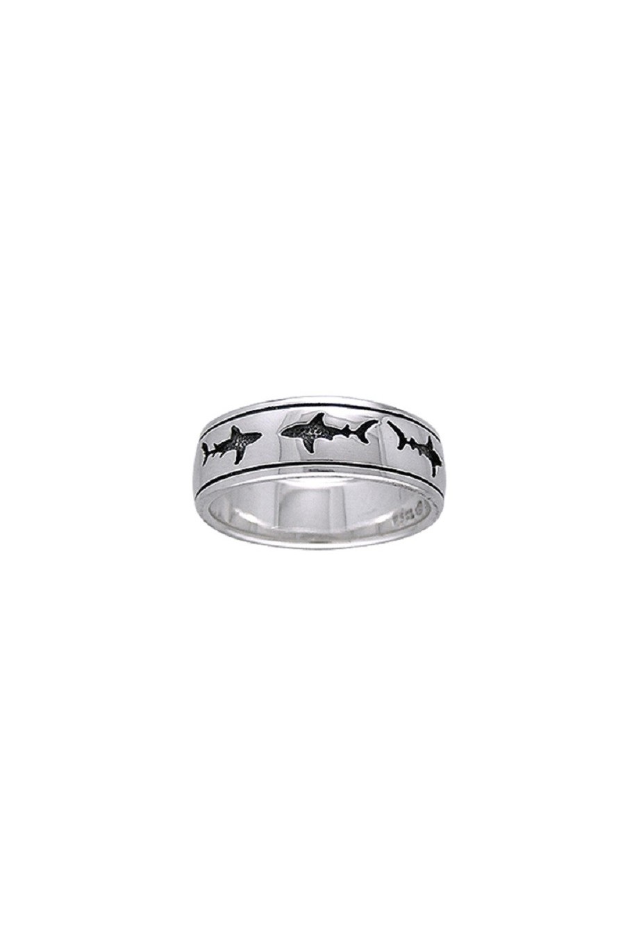 Our small "Sterling Silver Shark School" Alliance Ring is a tribute to those shark banks that sail the seas and that we must protect so much.