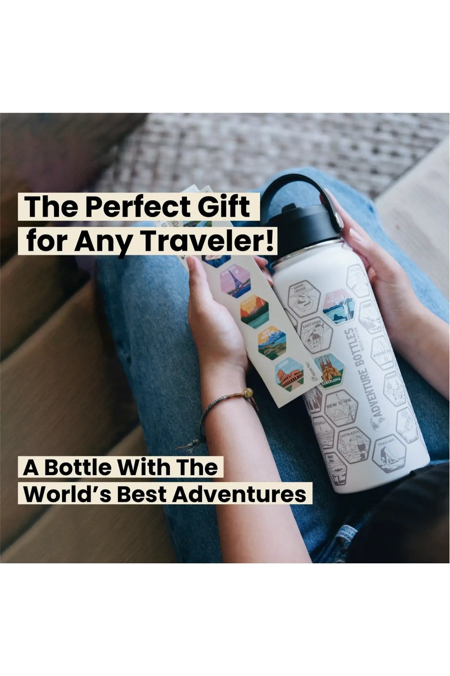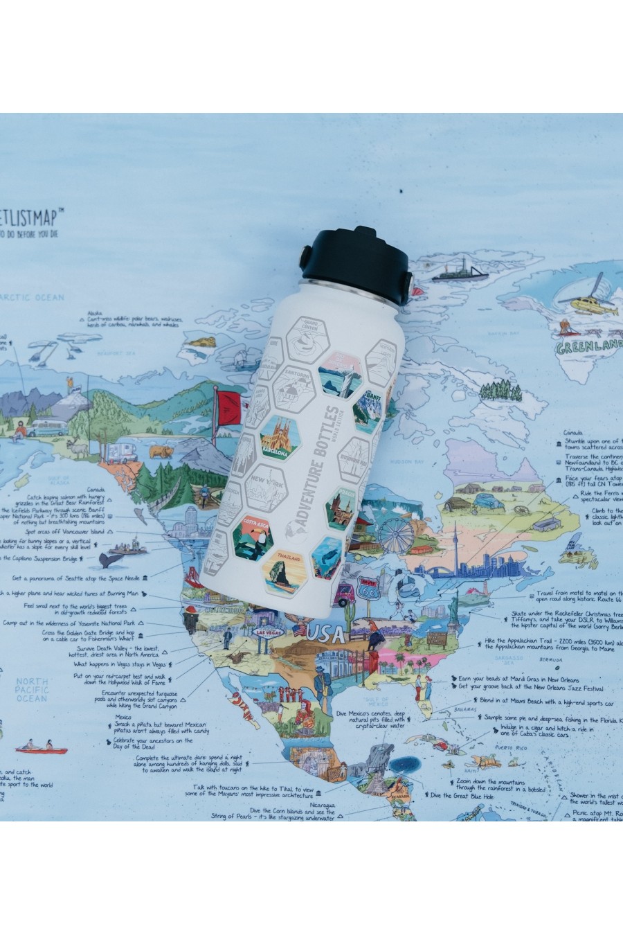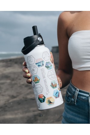 Grande capacità di 1 litro con un'ispirazione scritta ovunque. Letteralmente. Questa borraccia ti ispirerà per tutte le avventure che ti aspettano e sarà anche un dolce ricordo di tutti i posti fantastici che hai già visitato.