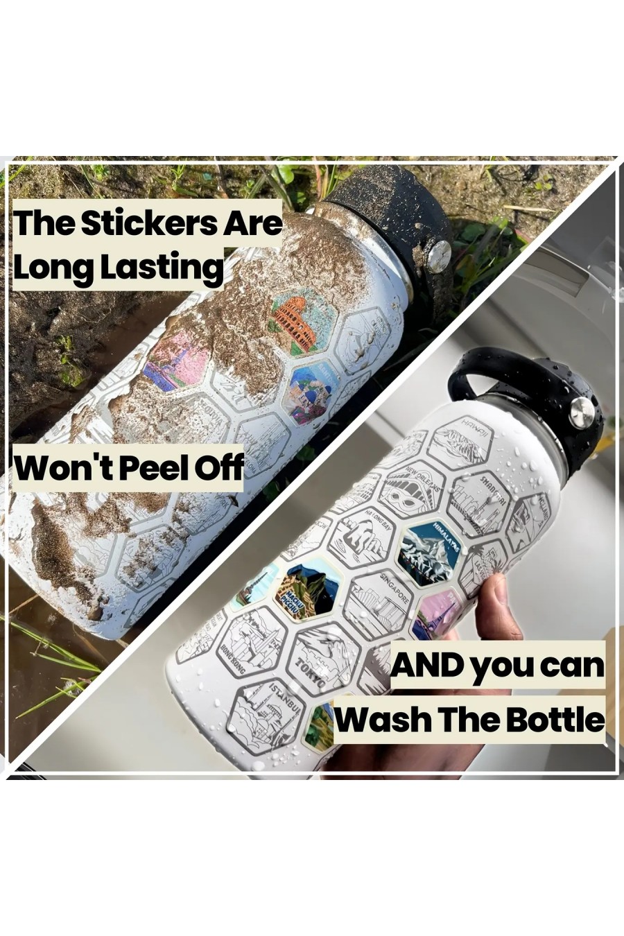 - Capacità 1 l - Acciaio inossidabile senza BPA - Tappo con cannuccia sostituibile - Design a prova di perdite - Isolamento a doppia parete - 12 ore di caldo / 15 ore di freddo - Include 47 adesivi premium per tracciare i tuoi viaggi.