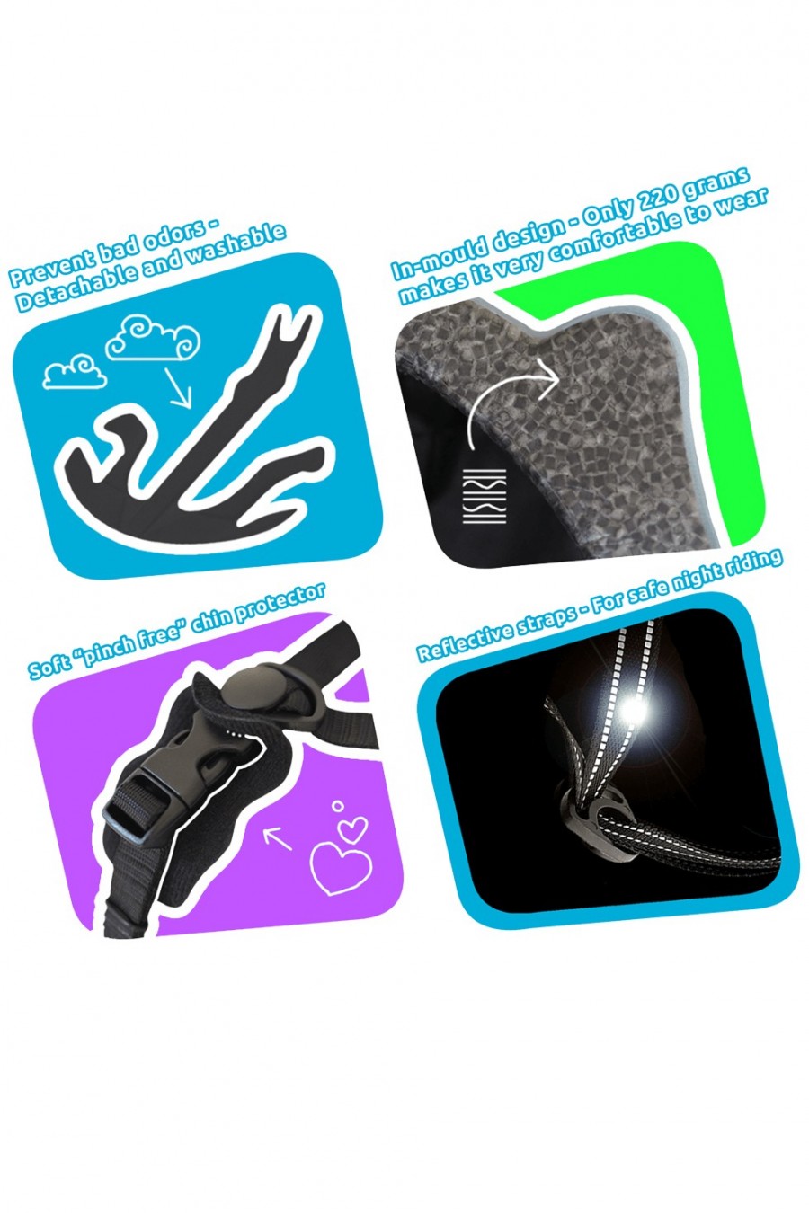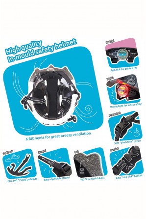Te kaski mierzą 49-55 cm i są idealne do hulajnóg, rowerów, trójkołowców, hulajnóg, rolek lub BMX. Poczuj się pewnie, wiedząc, że ten kask dla malucha ma certyfikat CE.