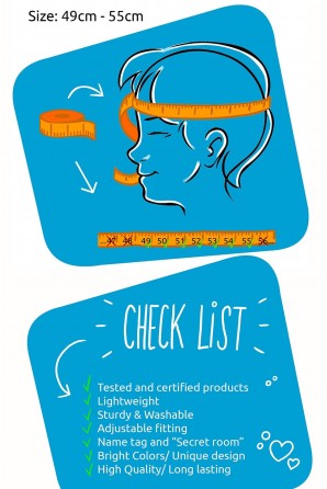 Rozmiar S: 49-55 cm regulowany, co zwykle odpowiada wiekowi od 2 do 7 lat.