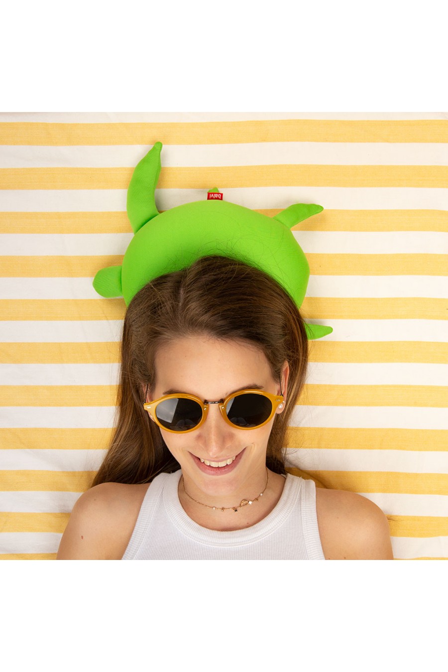 DESIGN ORIGINAL. O seu design divertido com formas marinhas torna-a a almofada ideal para as suas viagens de avião ou para apanhar sol na areia.