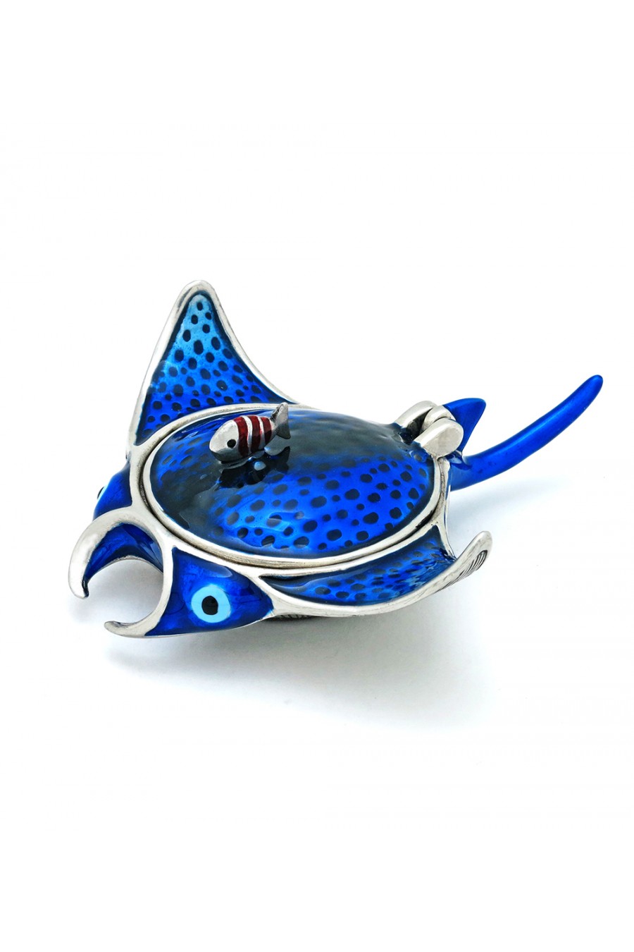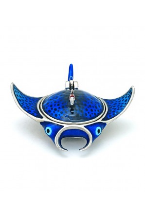 Esta delicada caixa para bijuterias em forma de arraia é o melhor presente para os amantes do mundo marinho. O corpo é dividido horizontalmente longitudinalmente. A metade superior é uma tampa que é levantada pela cauda para revelar a cavidade oca dentro que forma uma caixa arredondada rasa.