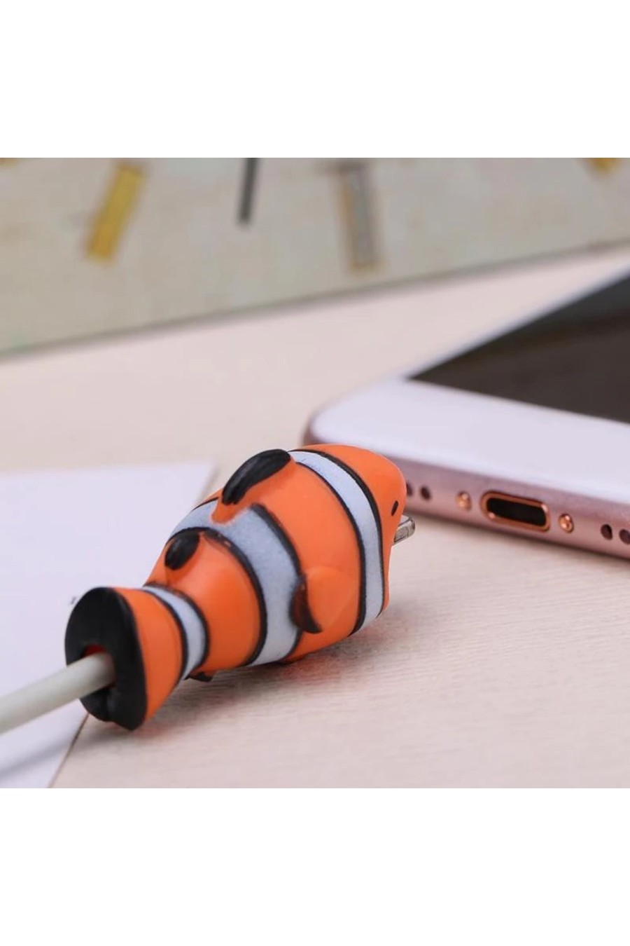 Divertidos e originais protetores de cabos com 7 formatos diferentes: Tubarão-baleia, Peixe-palhaço, Tubarão cinza, Golfinho, Tubarão azul, Baleia e Foca.