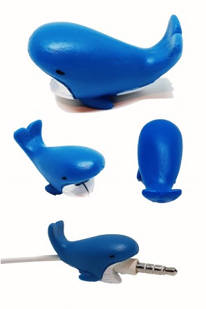 Divertidos e originais protetores de cabos com 7 formatos diferentes: Tubarão-baleia, Peixe-palhaço, Tubarão cinza, Golfinho, Tubarão azul, Baleia e Foca.