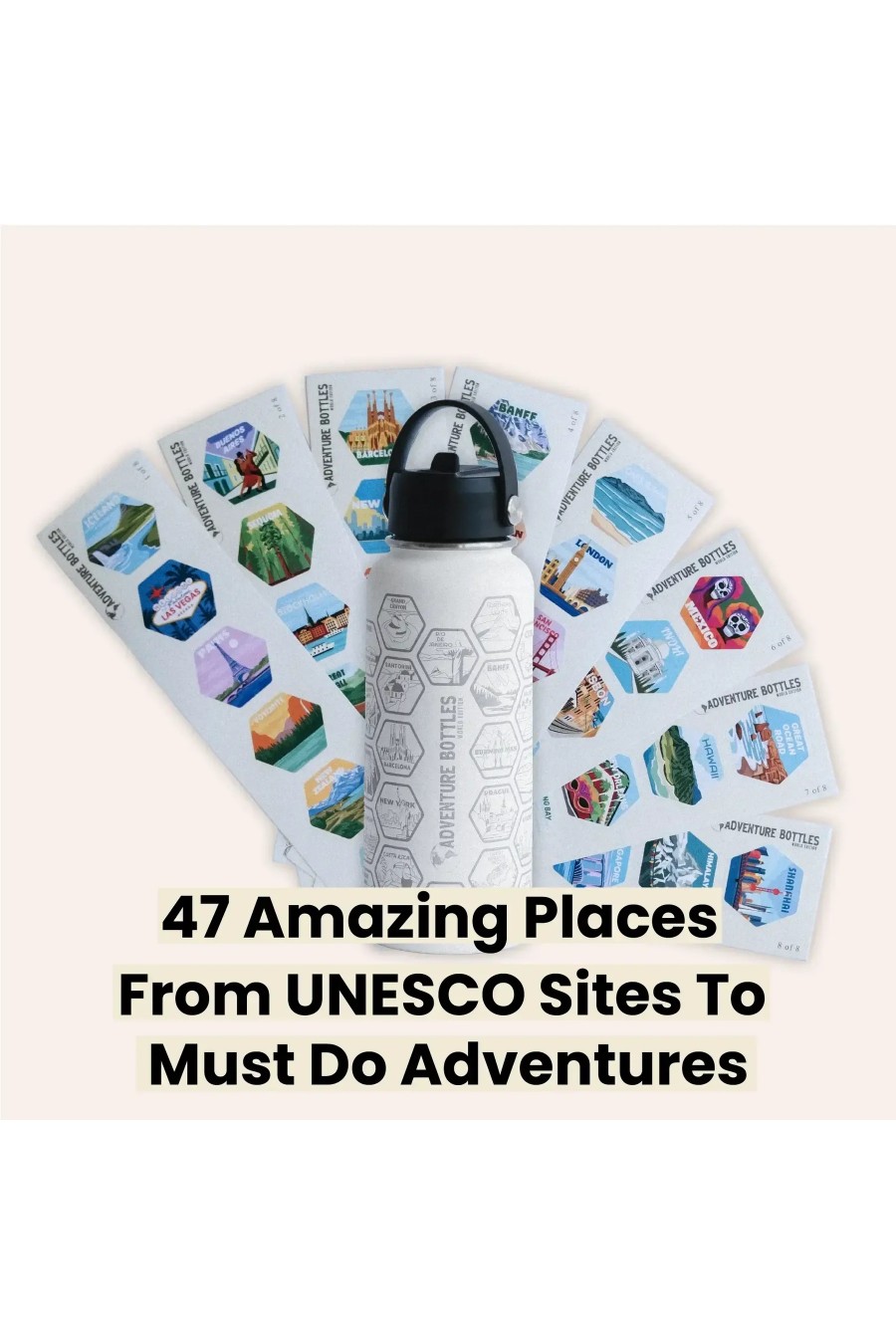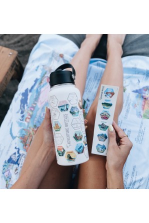 Grande capacidade de 1 litro com inspiração estampada. Literalmente. Esta garrafa irá inspirá-lo para todas as aventuras que o aguardam e também será sua lembrança gentil de todos os lugares incríveis que você já visitou.