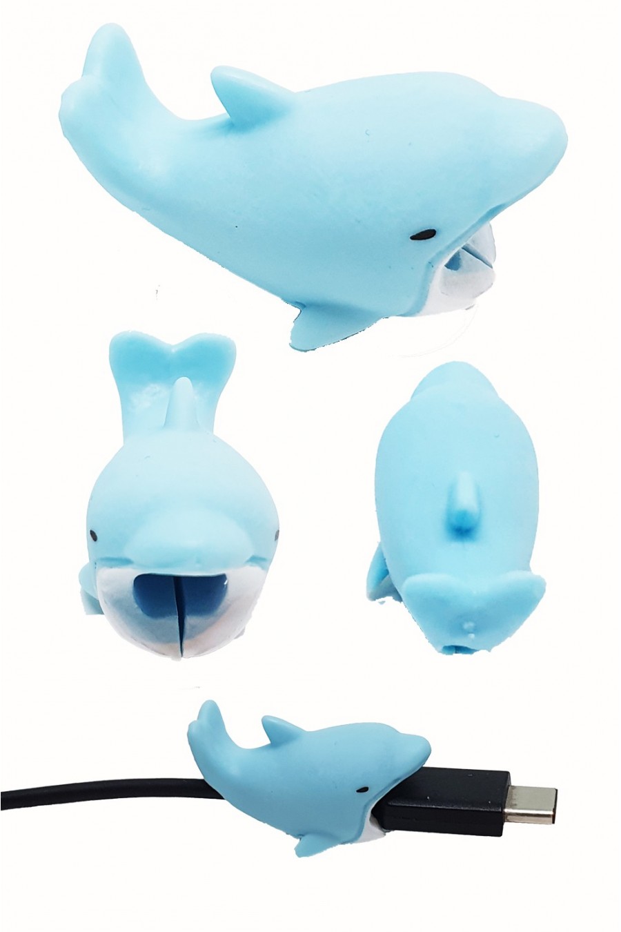 Divertidos y originales protectores de cables con 7 diferentes formas: Tiburón ballena, Pez payaso, Tiburón gris, Delfín, Tiburón azul, Ballena y Foca.