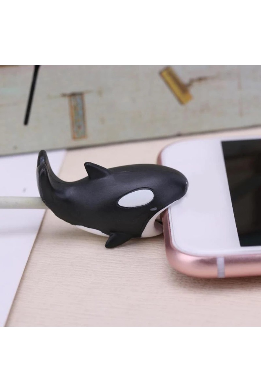 Divertidos y originales protectores de cables con 7 diferentes formas: Tiburón ballena, Pez payaso, Tiburón gris, Delfín, Tiburón azul, Ballena y Foca.