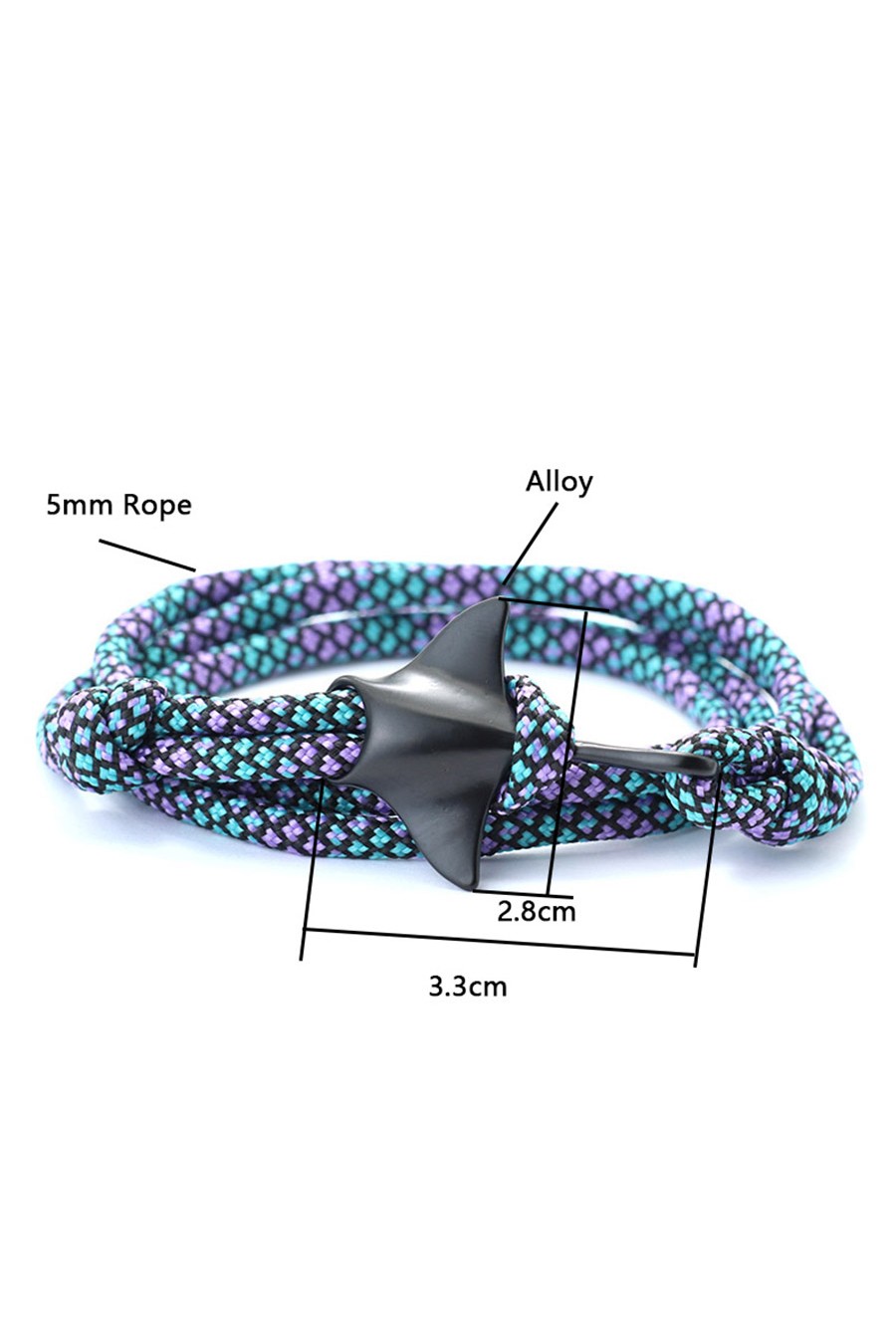 Colorful rope bracelet for men and women. Adjustable. Black manta ray locking bead.