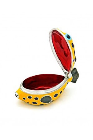 This delicate box for trinkets in the shape of a puffer fish is the best gift for lovers of the marine world. The body is divided horizontally lengthwise. The upper half is a lid that is lifted by the tail to reveal the hollow cavity inside that forms a shallow oval box.