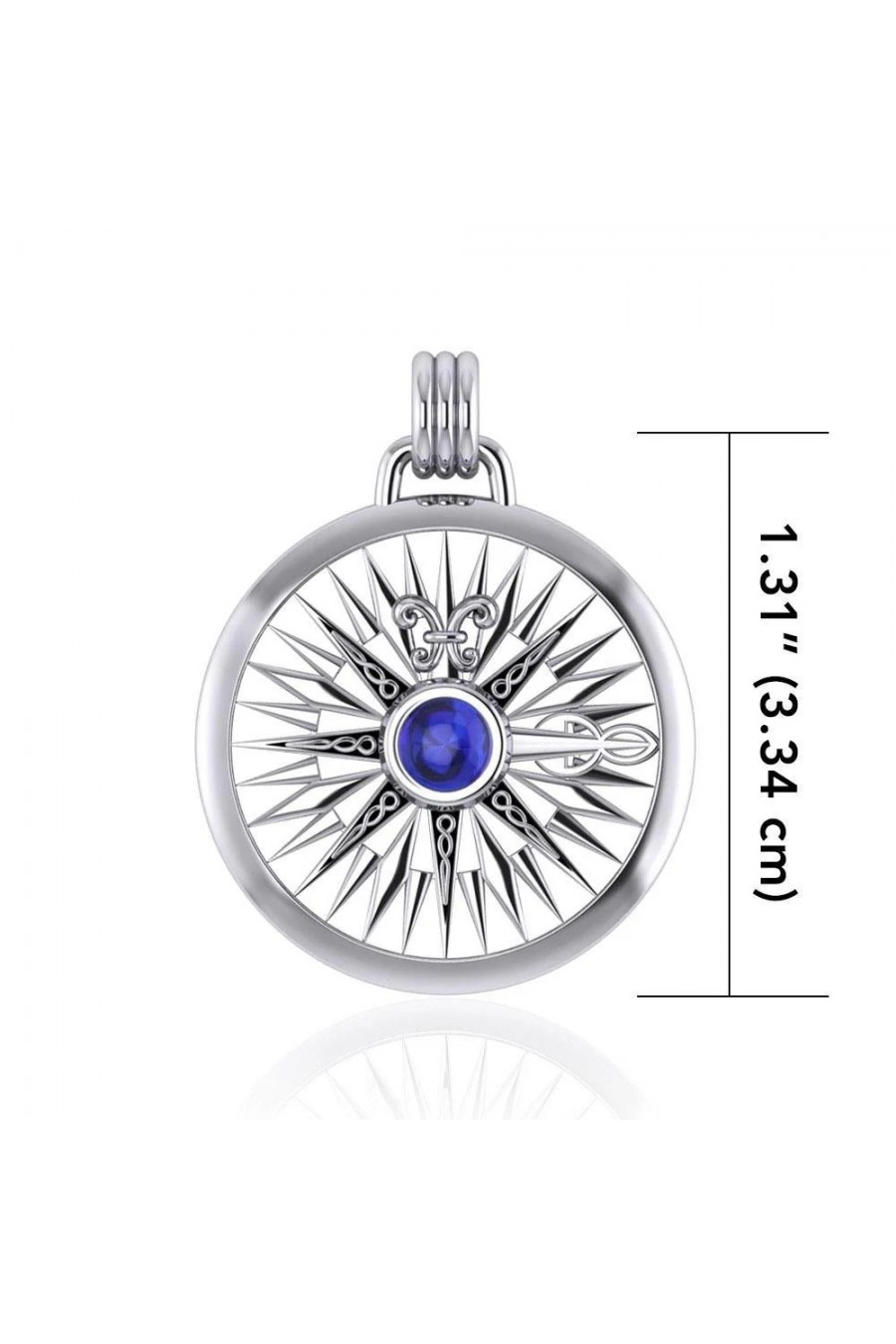 Celtic Fleur de Lis Compass Rose Gemstone Pendant